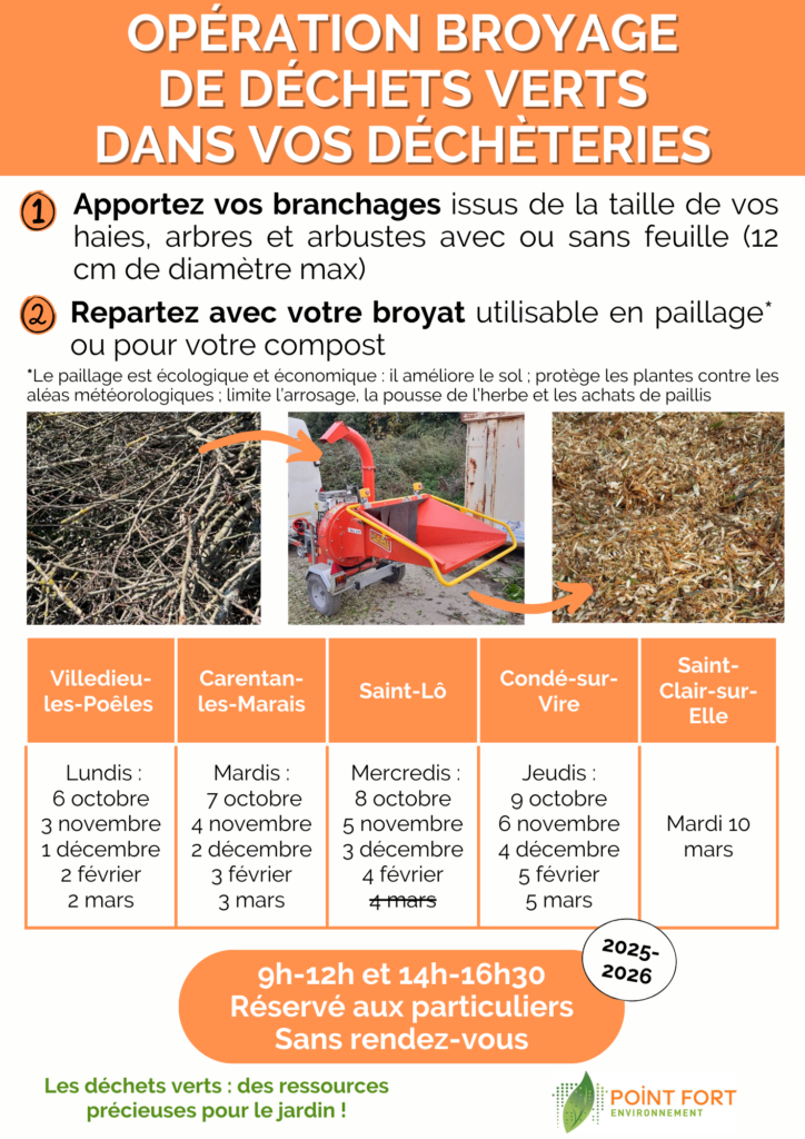Le Point Fort Environnement organise des opérations de broyage de branches dans ses déchèteries, afin de sensibiliser à de nouvelles pratiques et transformer les déchets verts en ressource.